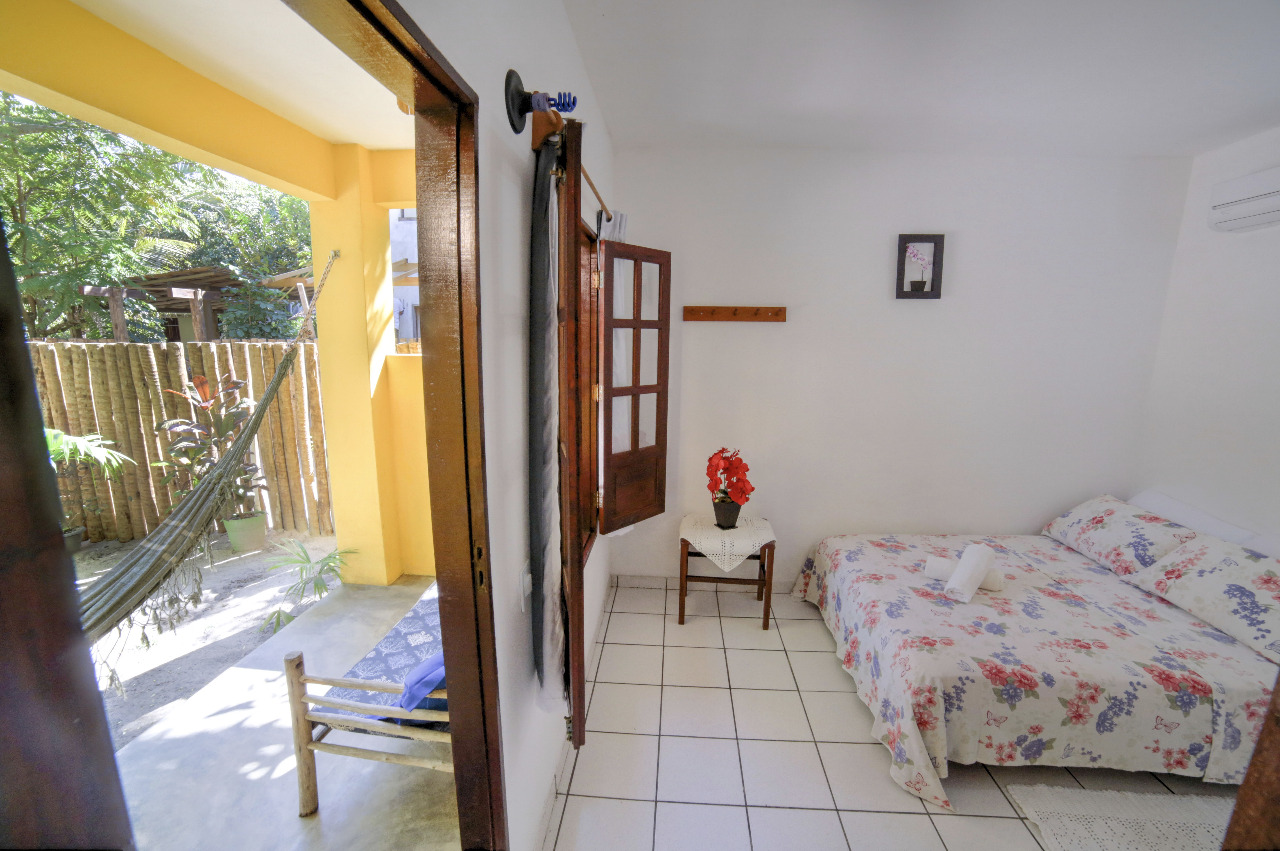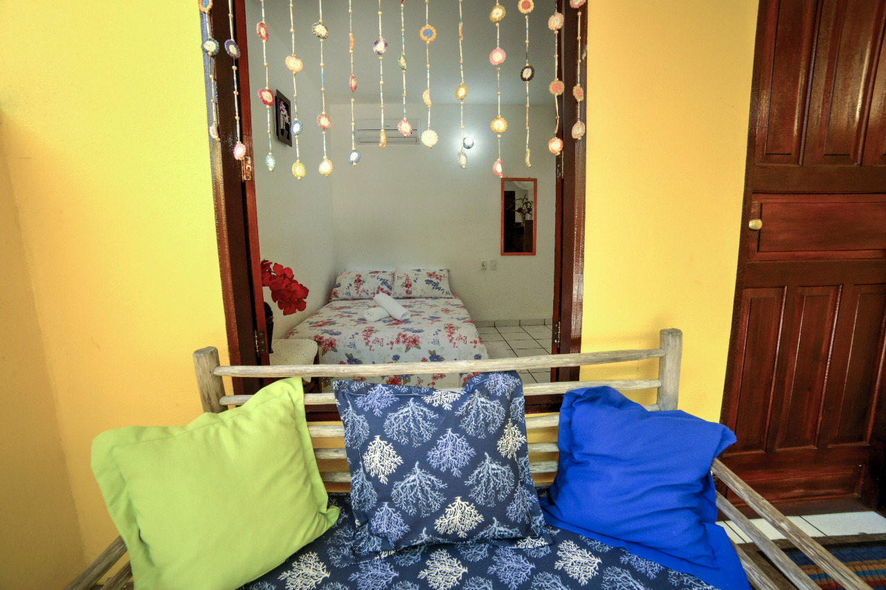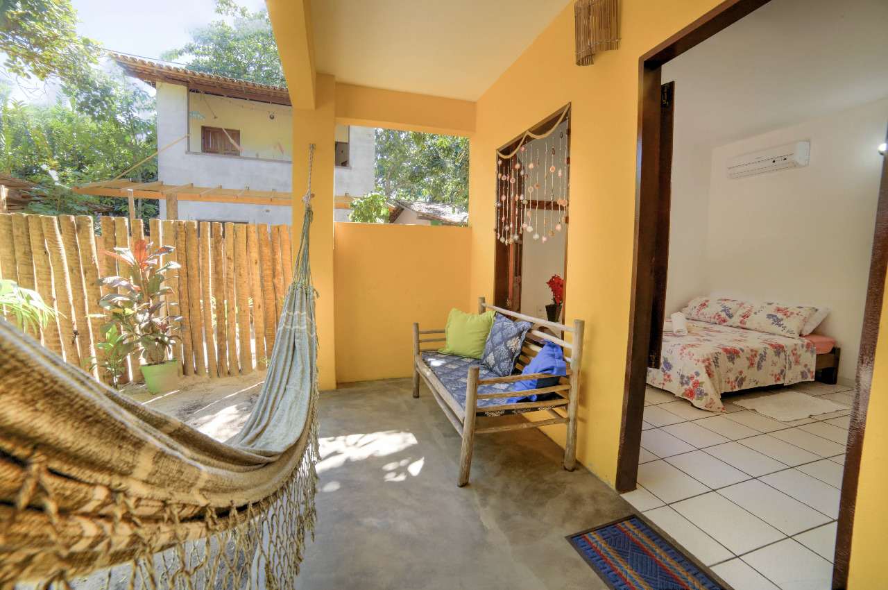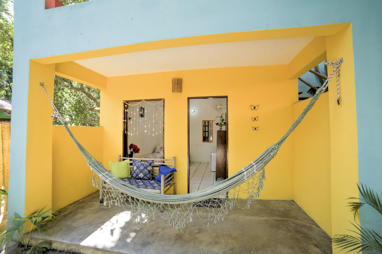 Pensada para o máximo conforto de duas pessoas, a Suite Amarelo Caju oferece um ambiente charmoso e relaxante. O ponto alto é, sem dúvida, a varanda privativa com rede, onde você pode desfrutar de momentos tranquilos, embalado pela brisa tropical.