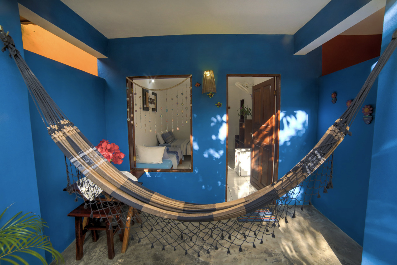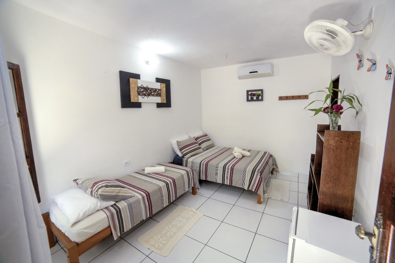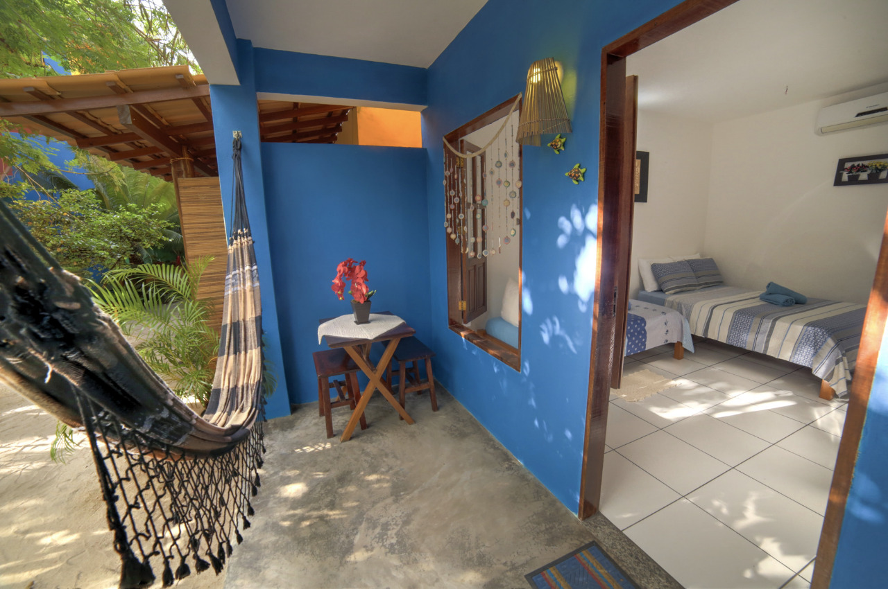 Projetada para acomodar confortavelmente 3 pessoas, a Suíte Azul Mar Tripla Kitoki é ideal para pequenos grupos, casais que viajam com um filho ou amigos que querem dividir o aconchego de Caraíva. O ambiente espaçoso e as camas confortáveis garantem o descanso total para que você aproveite cada momento das suas férias em Caraíva.