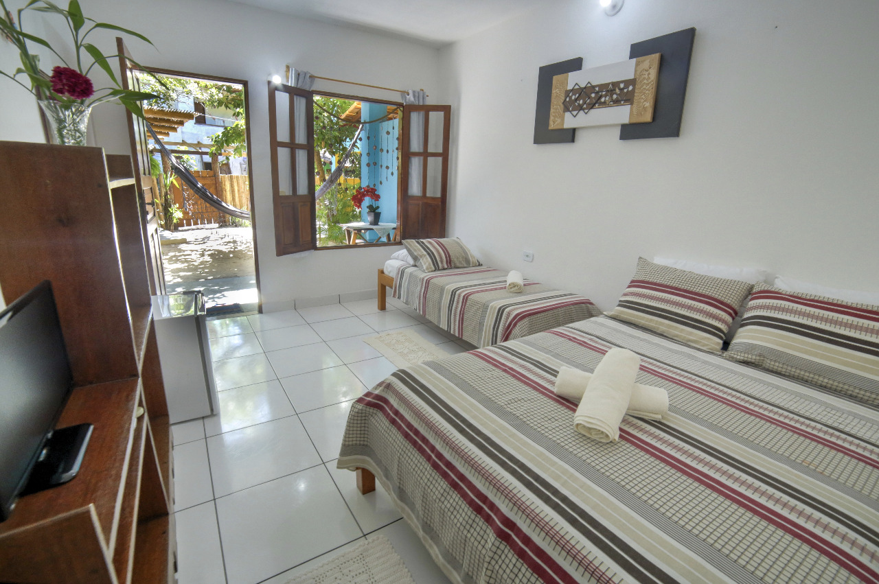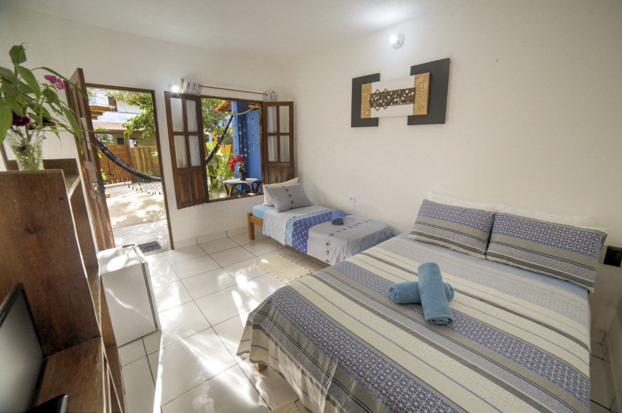 Localizada dentro da nossa pousada, que oferece um ambiente de hospitalidade nativa e cuidado, esta hospedagem tripla em Caraíva está estrategicamente posicionada próxima ao acesso da praia e ao rio. Não perca a chance de fazer sua reserva em Caraíva e acordar sentindo a brisa do mar. Uma excelente opção de suíte charmosa em Caraíva para a sua próxima viagem.